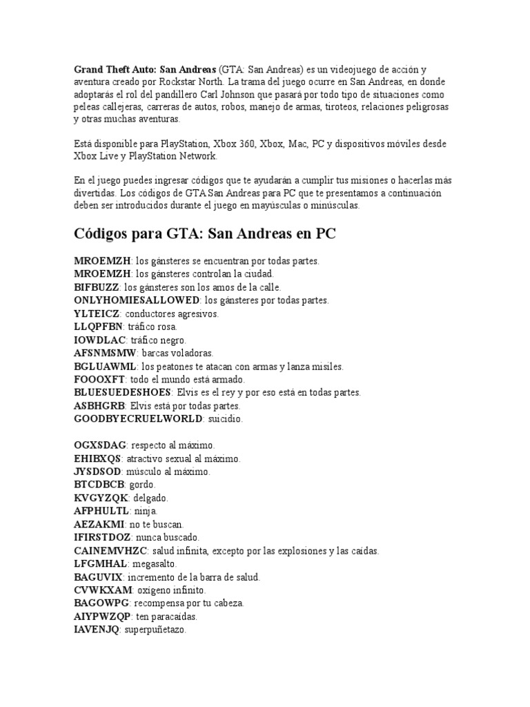 Uncategorized Trucos De Gta San Andreas Xbox 360 Armas Si no te funciona alguno de estos trucos para grand theft auto